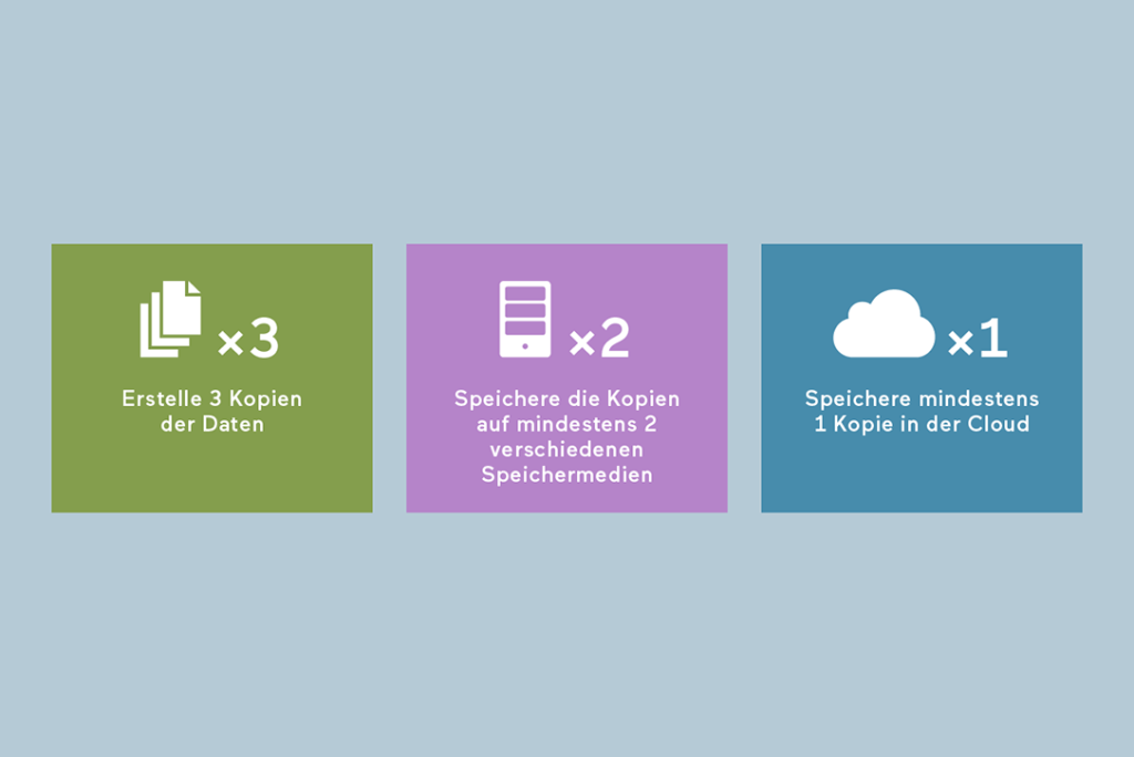 3 Kopien deiner Daten: Das Original und zwei Backups.